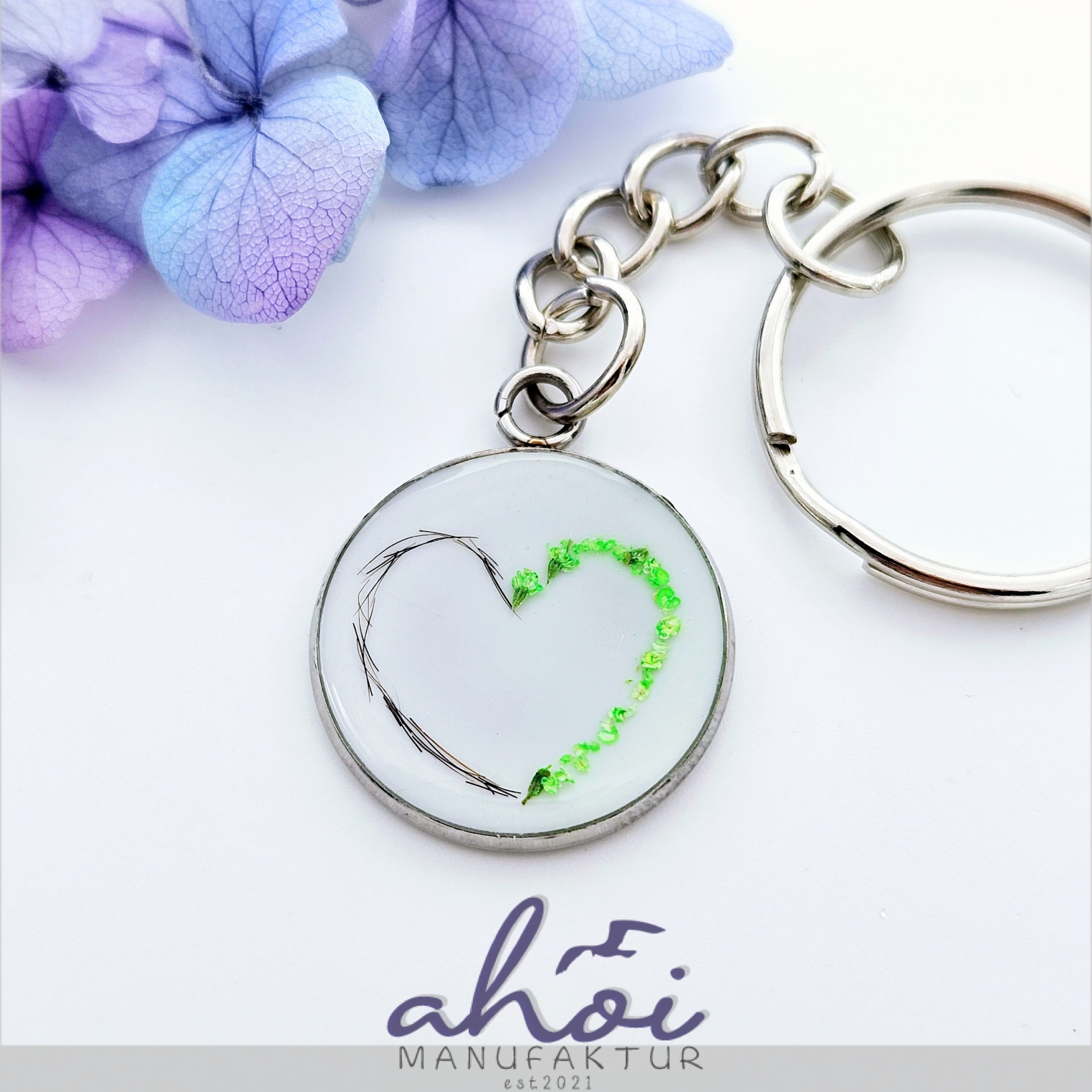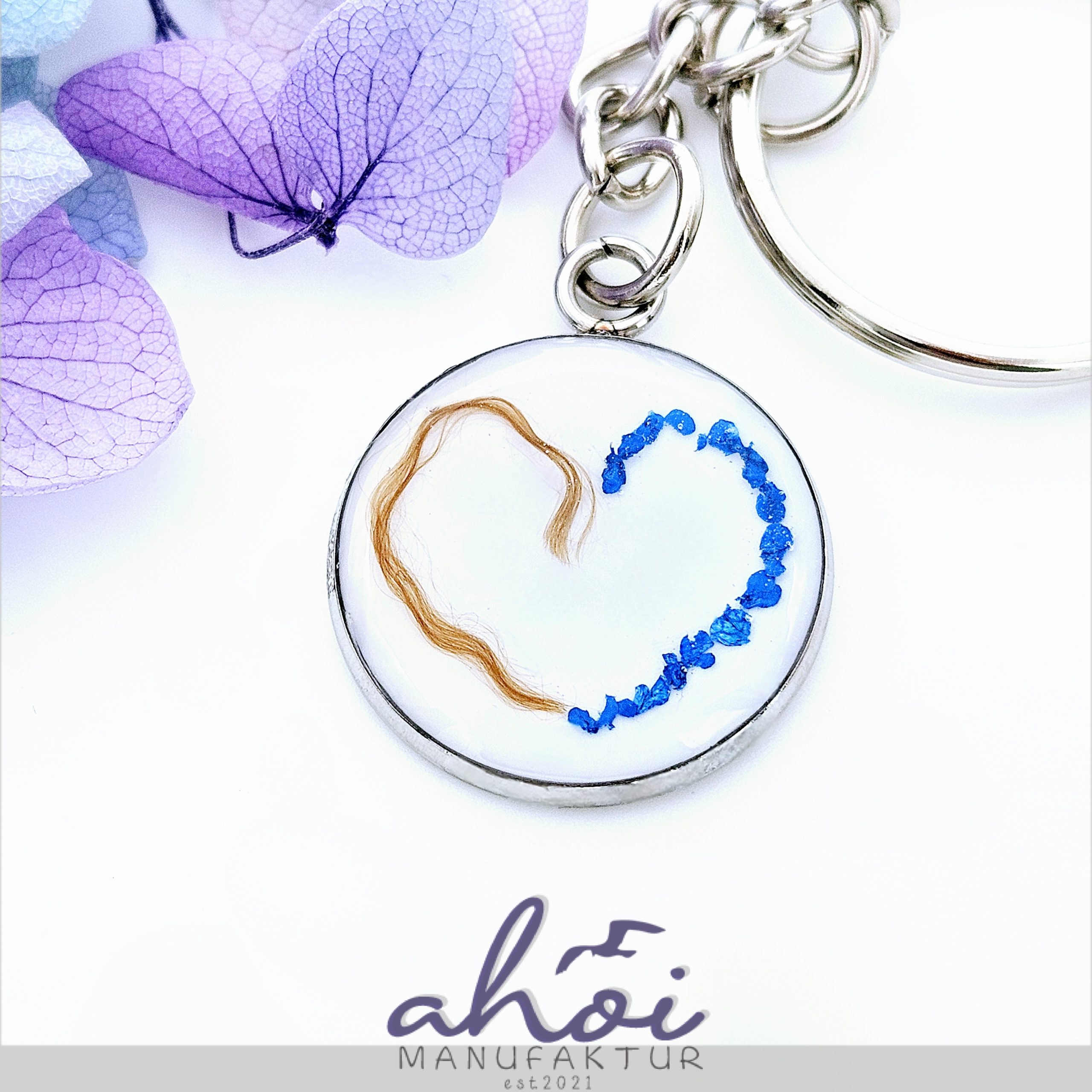 Den Anhänger befülle ich mit dem Erbgut und ergänze ihn auf Wunsch mit Extras wie Glitzer, Blattflocken, Blüten oder einer Gravur.